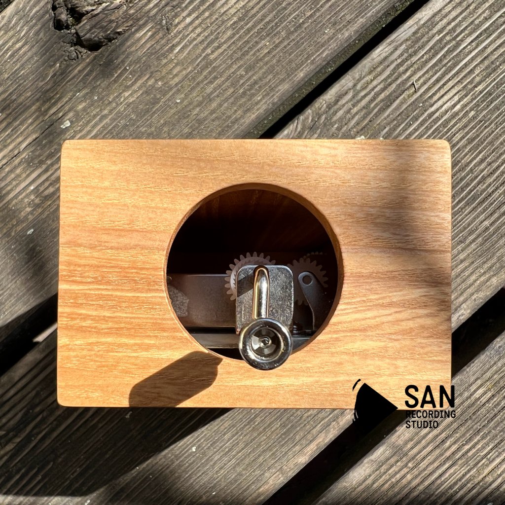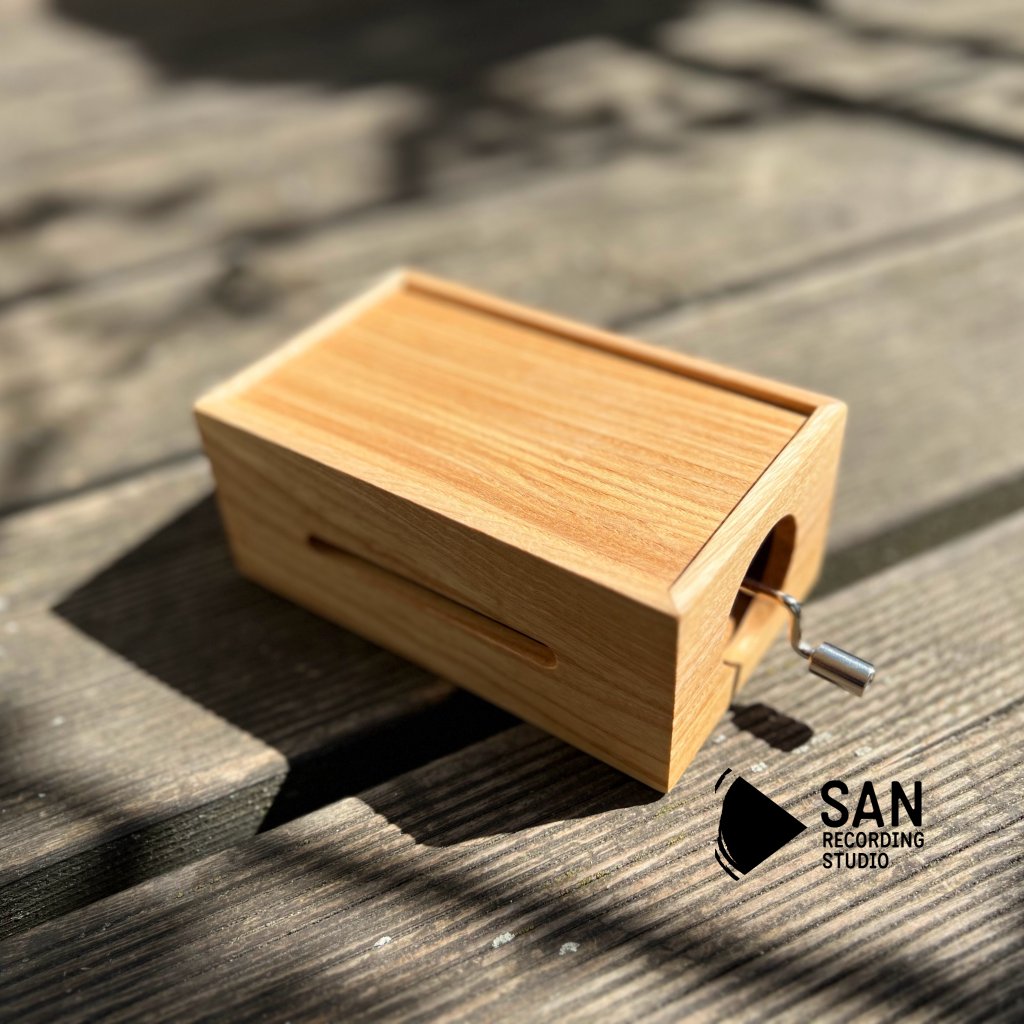 Dřevěná krabička vyrobená ze smrku nebo olše přirozeně a dokonale zesiluje čistý zvuk hracího strojku a lze ji použít i v "uzavřeném" stavu.